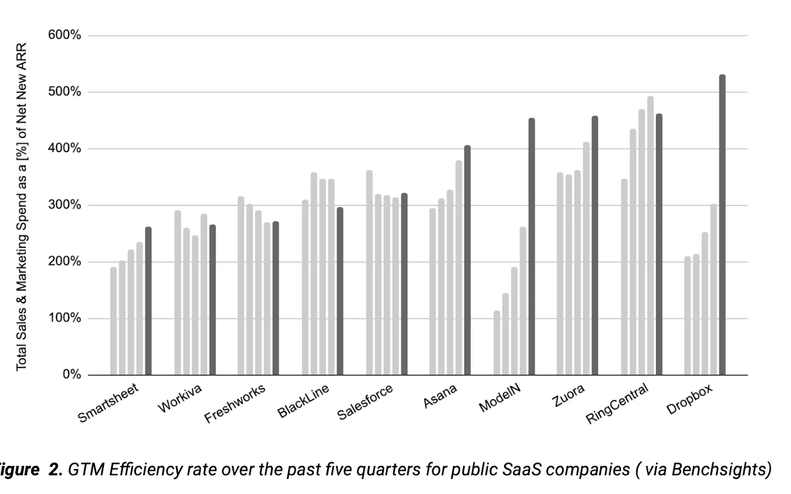 One of the key reasons driving AI adoption is that in B2B SaaS, growth has declined to about half (since the 2022 crash), and the cost of growth has nearly doubled. GTM efficiency - the cost of acquiring one dollar of net new ARR - has spiraled out of control, leaving many without immediate recourse.